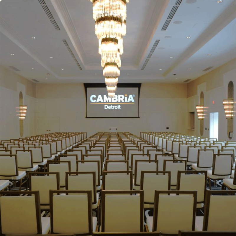 Located in the heart of Downtown Detroit, Cambria Hotel blends modern luxury with timeless Art Deco elegance. Steps from top attractions and business districts, it’s perfect for corporate meetings or social events. Guests will enjoy 154 stylish rooms, high-speed Wi-Fi, dynamic event spaces, and premier dining and entertainment options.